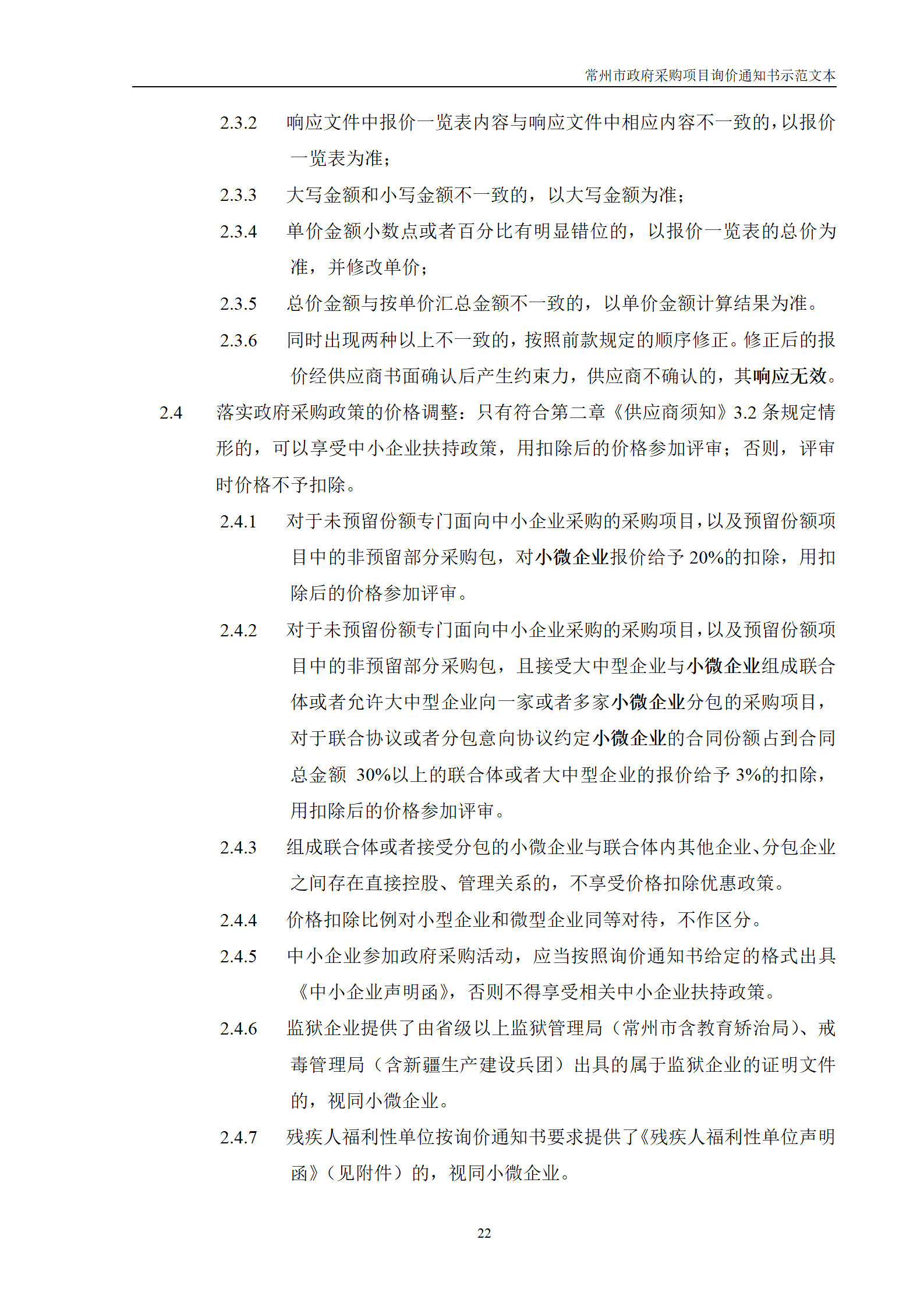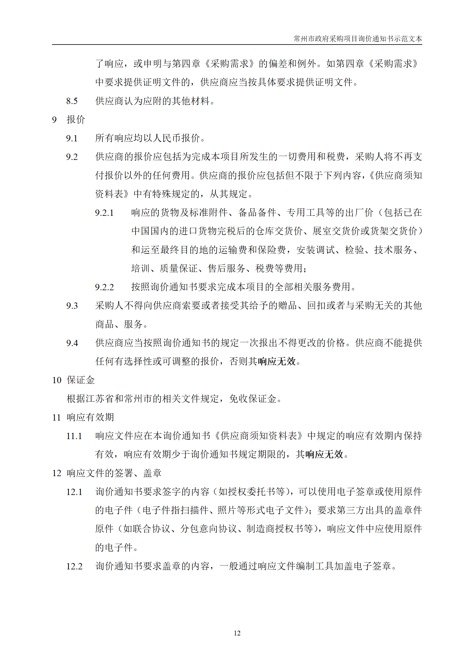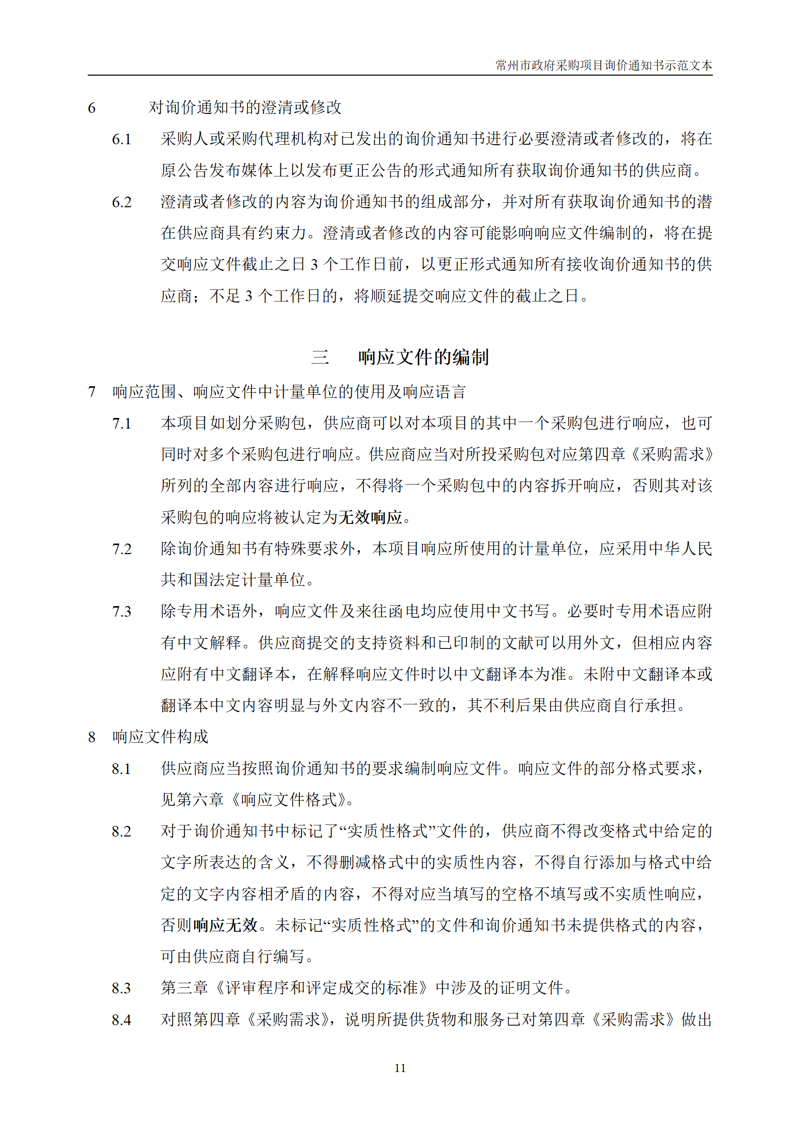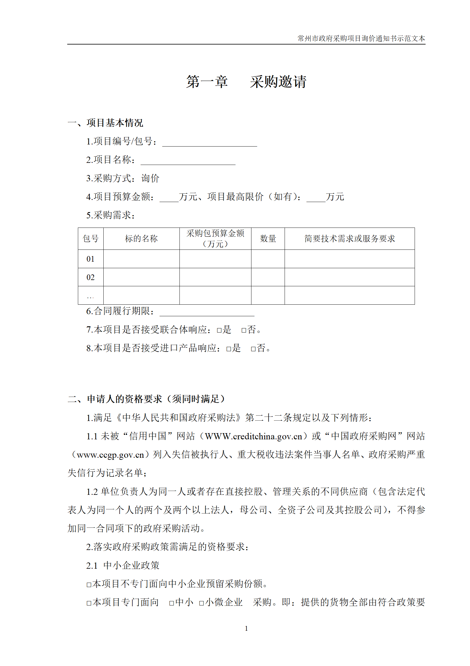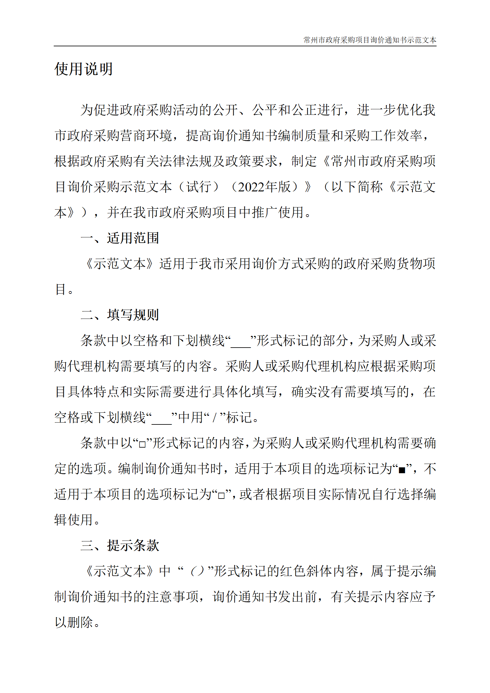 常州市政府采购文件示范文本(2022年版试行)——询价采购示范文本