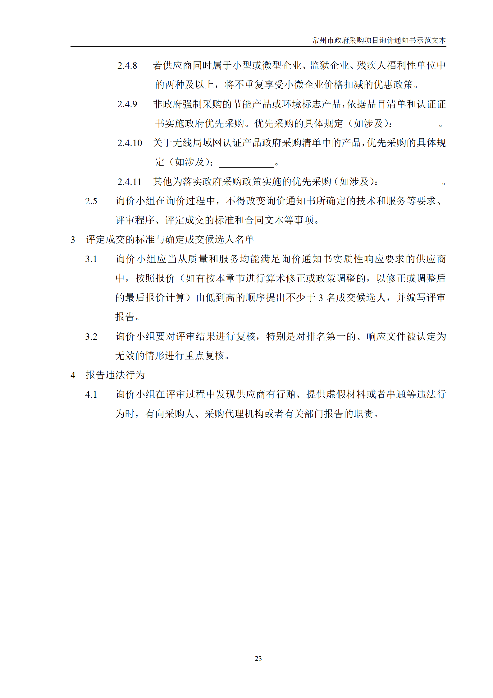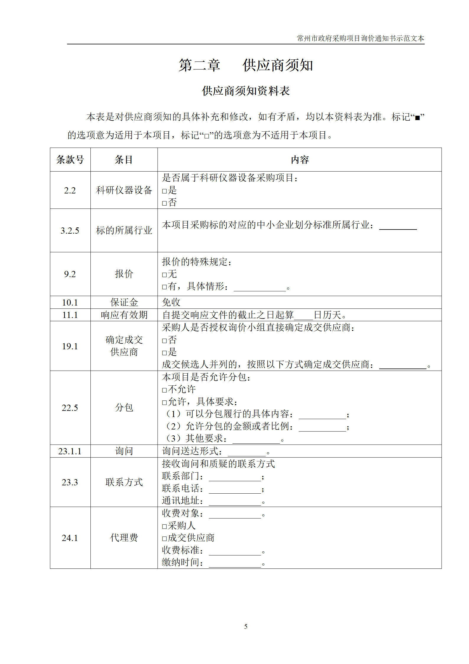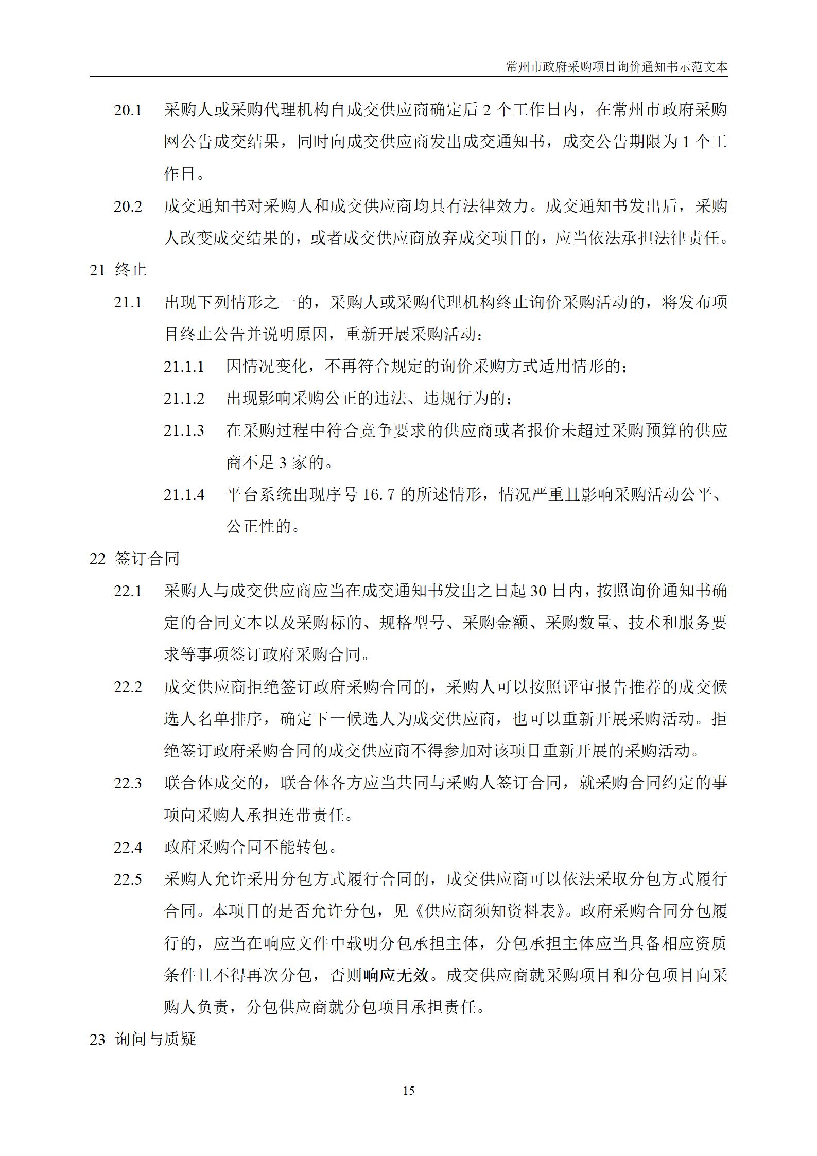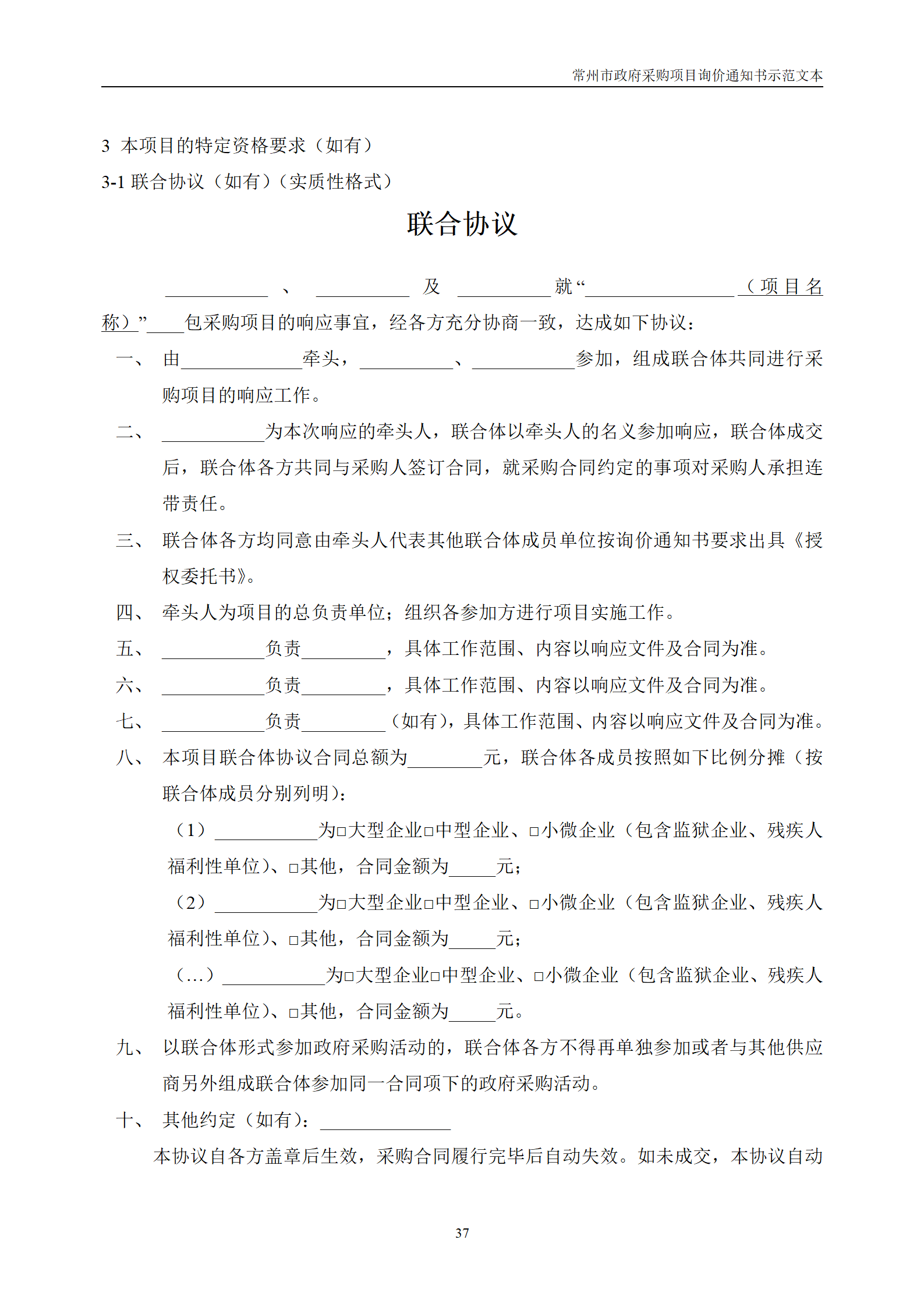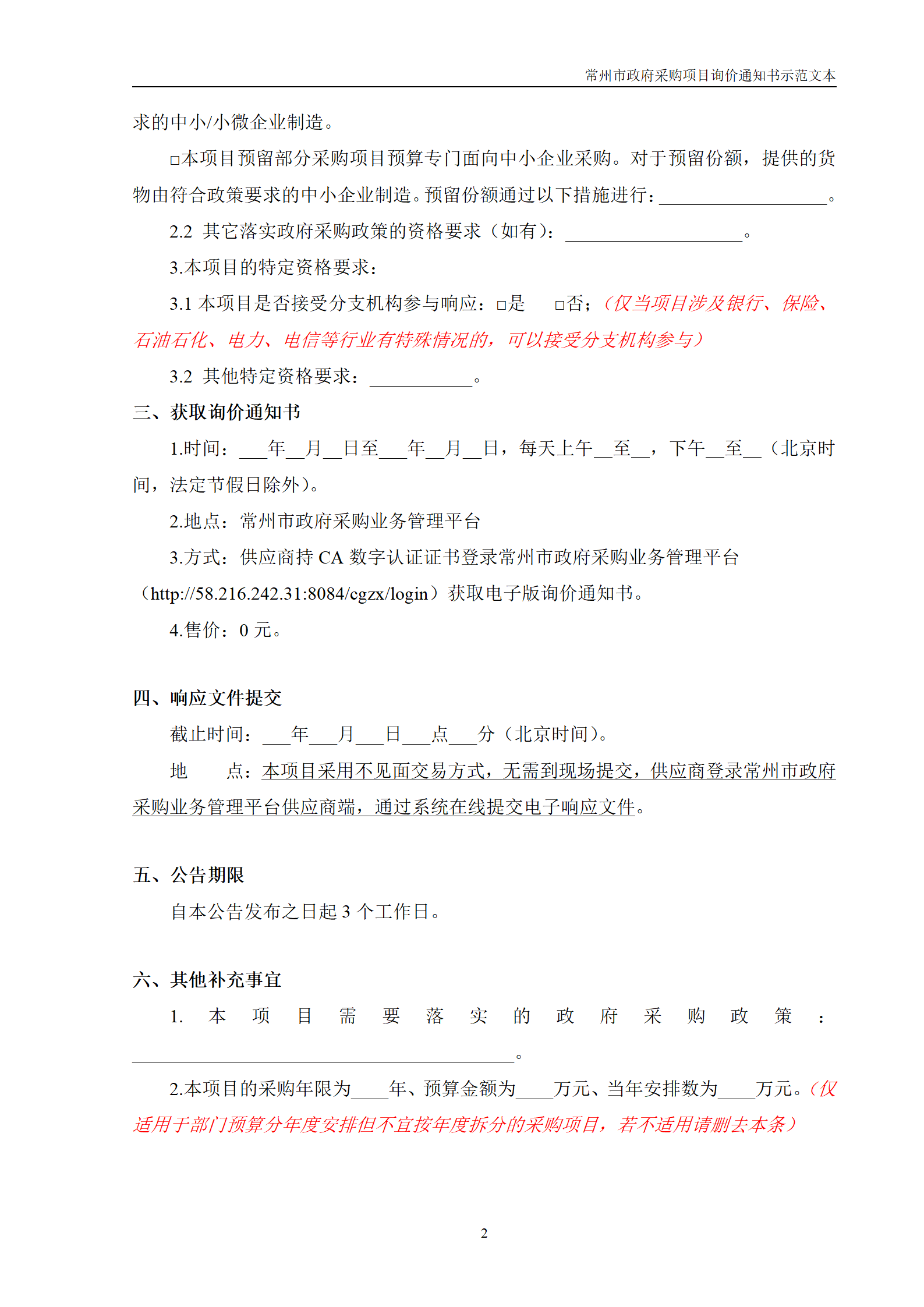 常州市政府采购文件示范文本(2022年版试行)——询价采购示范文本