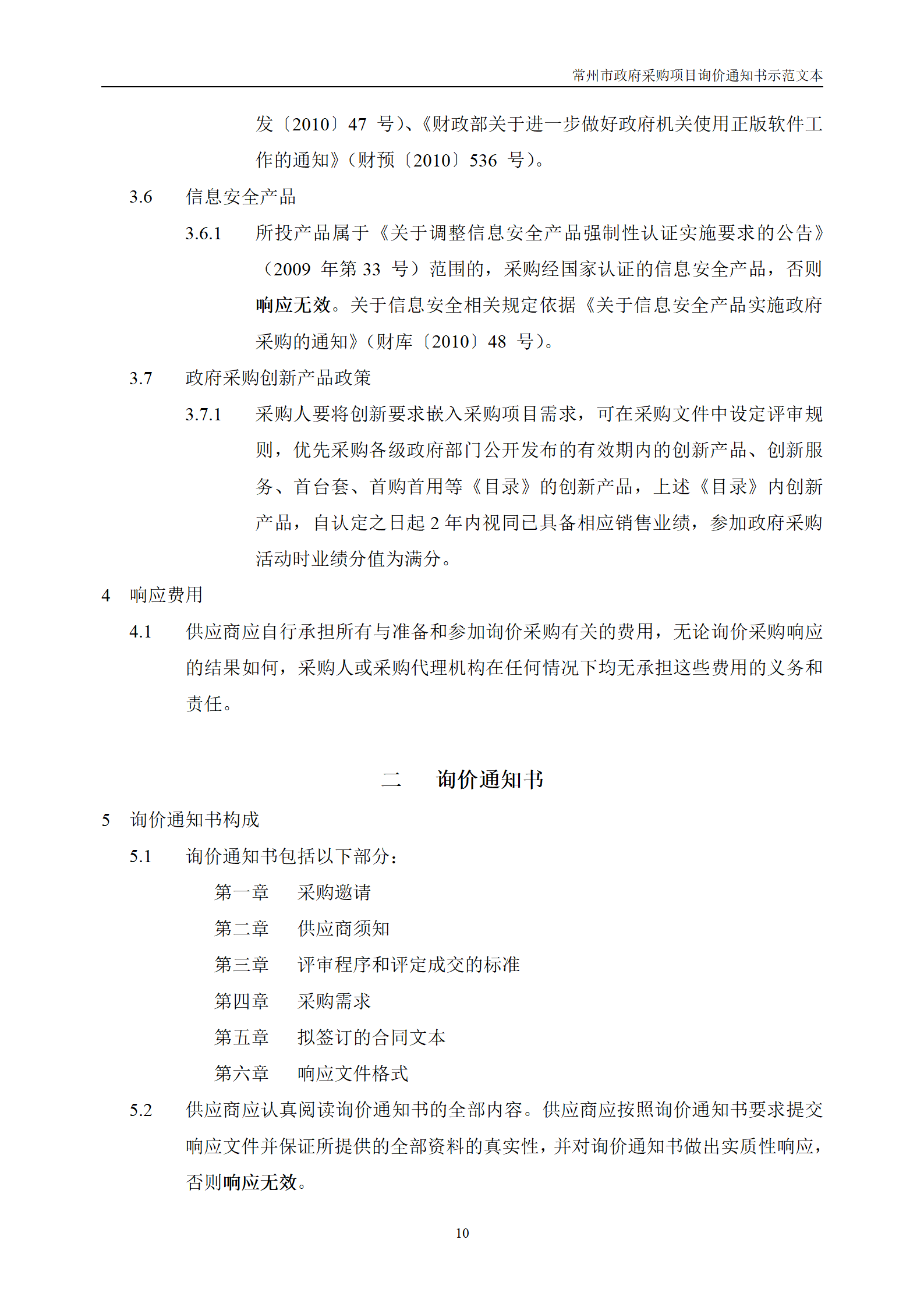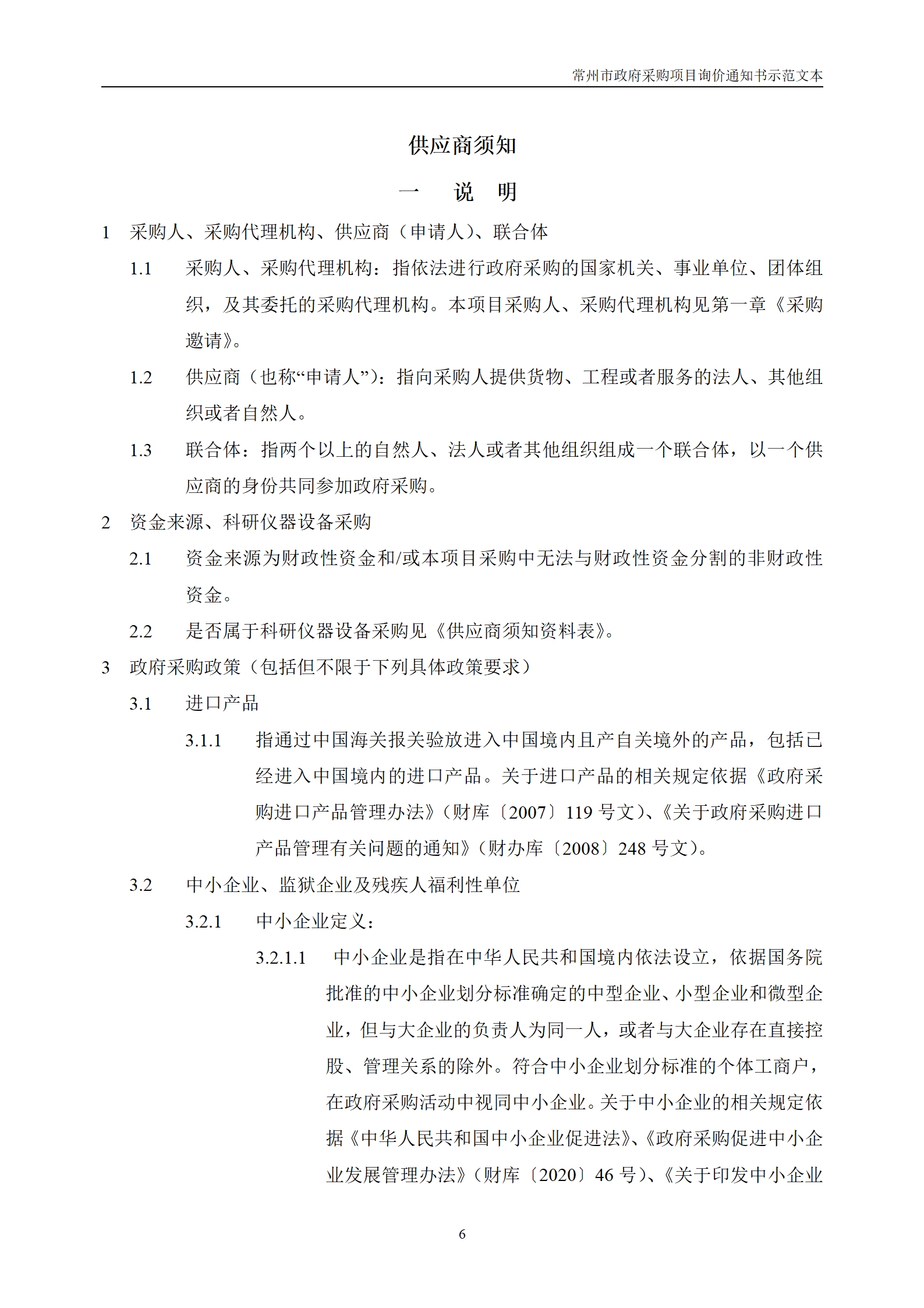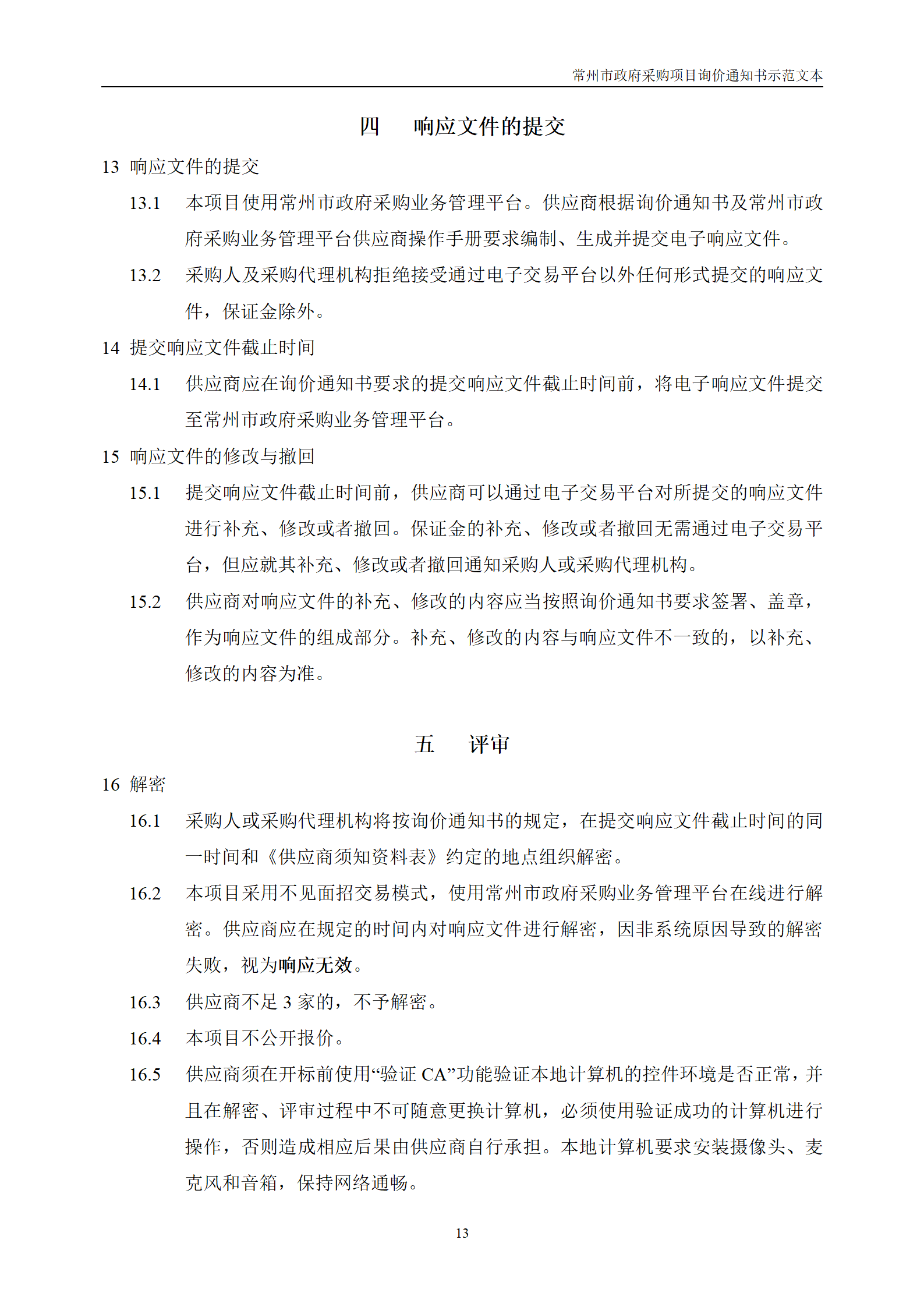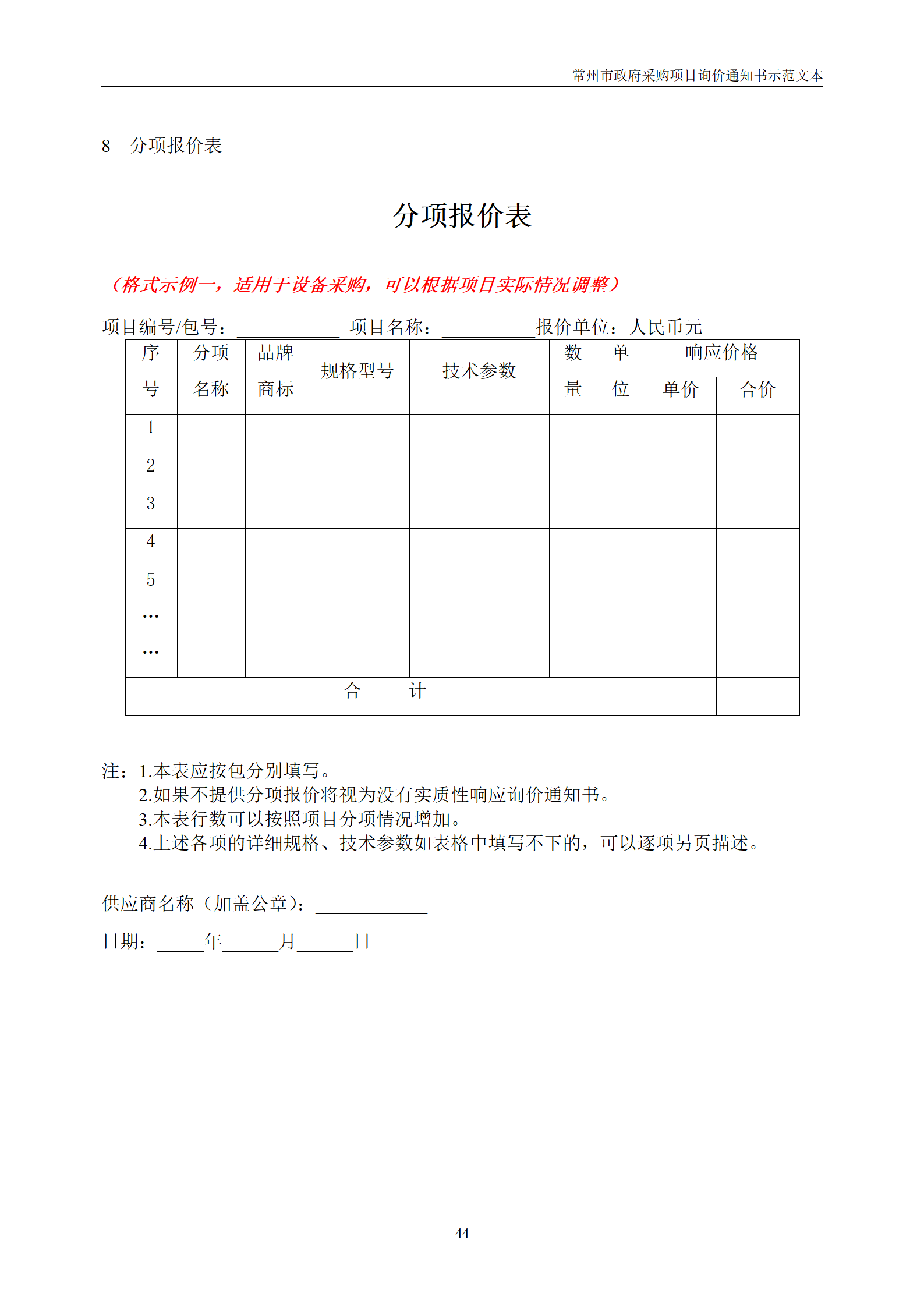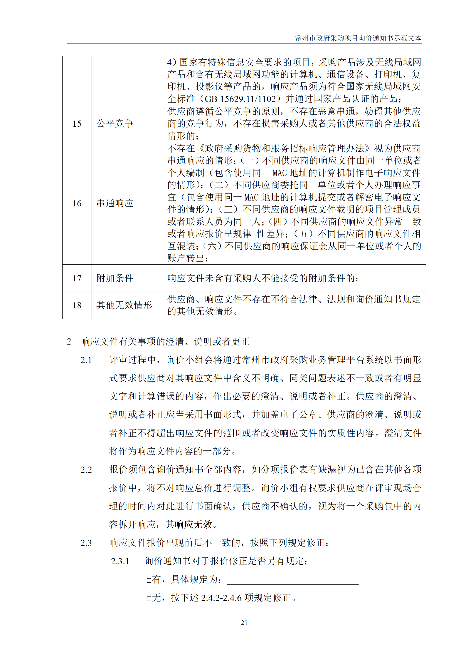 常州市政府采购文件示范文本(2022年版试行)——询价采购示范文本
