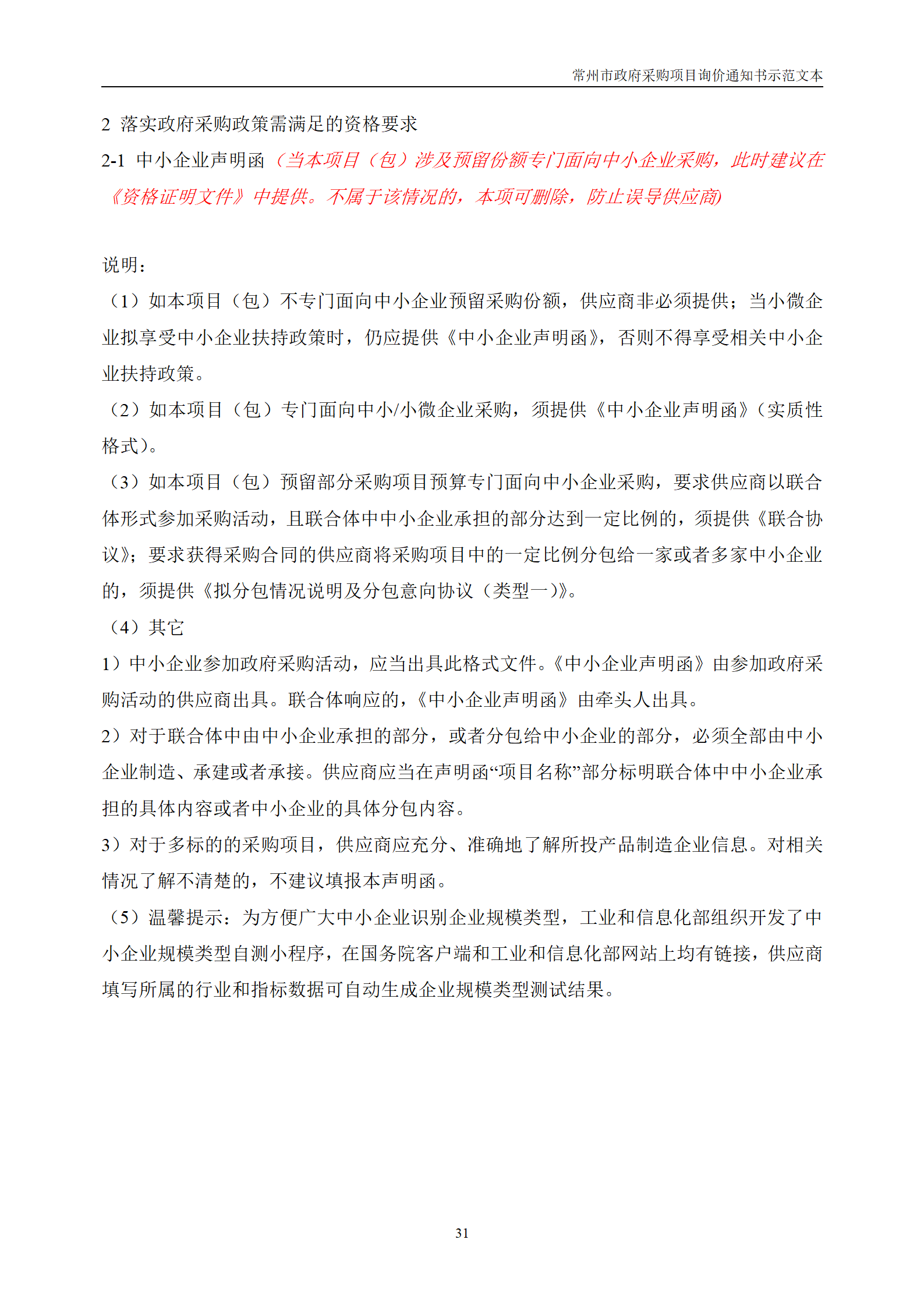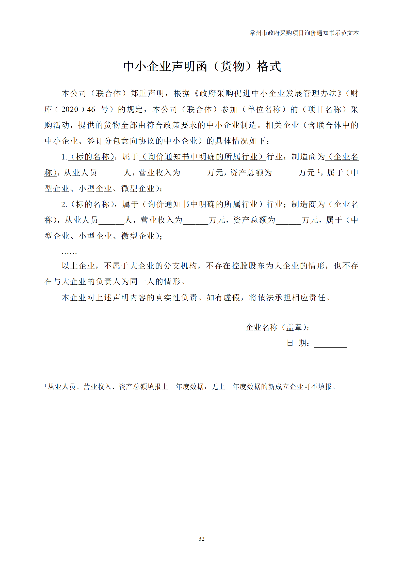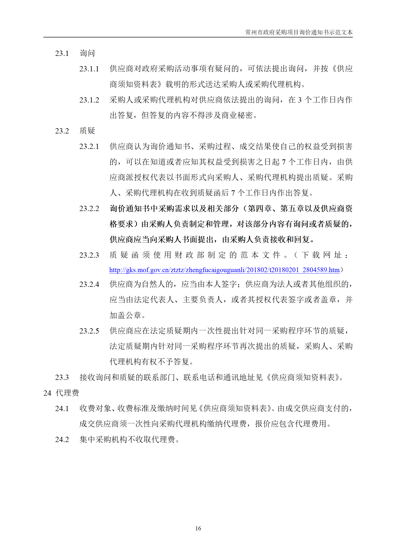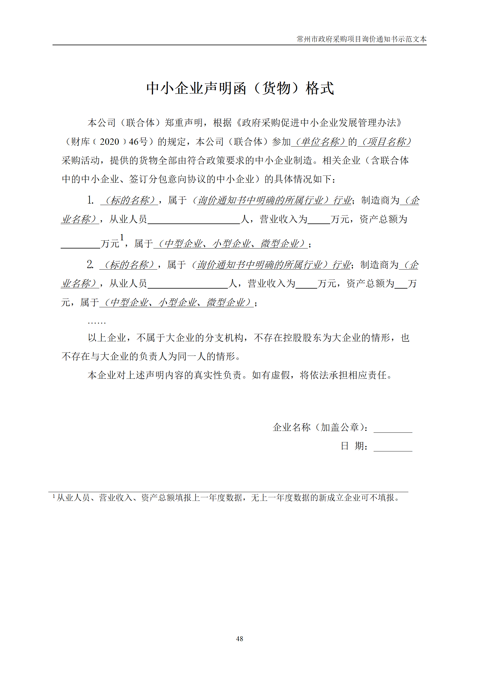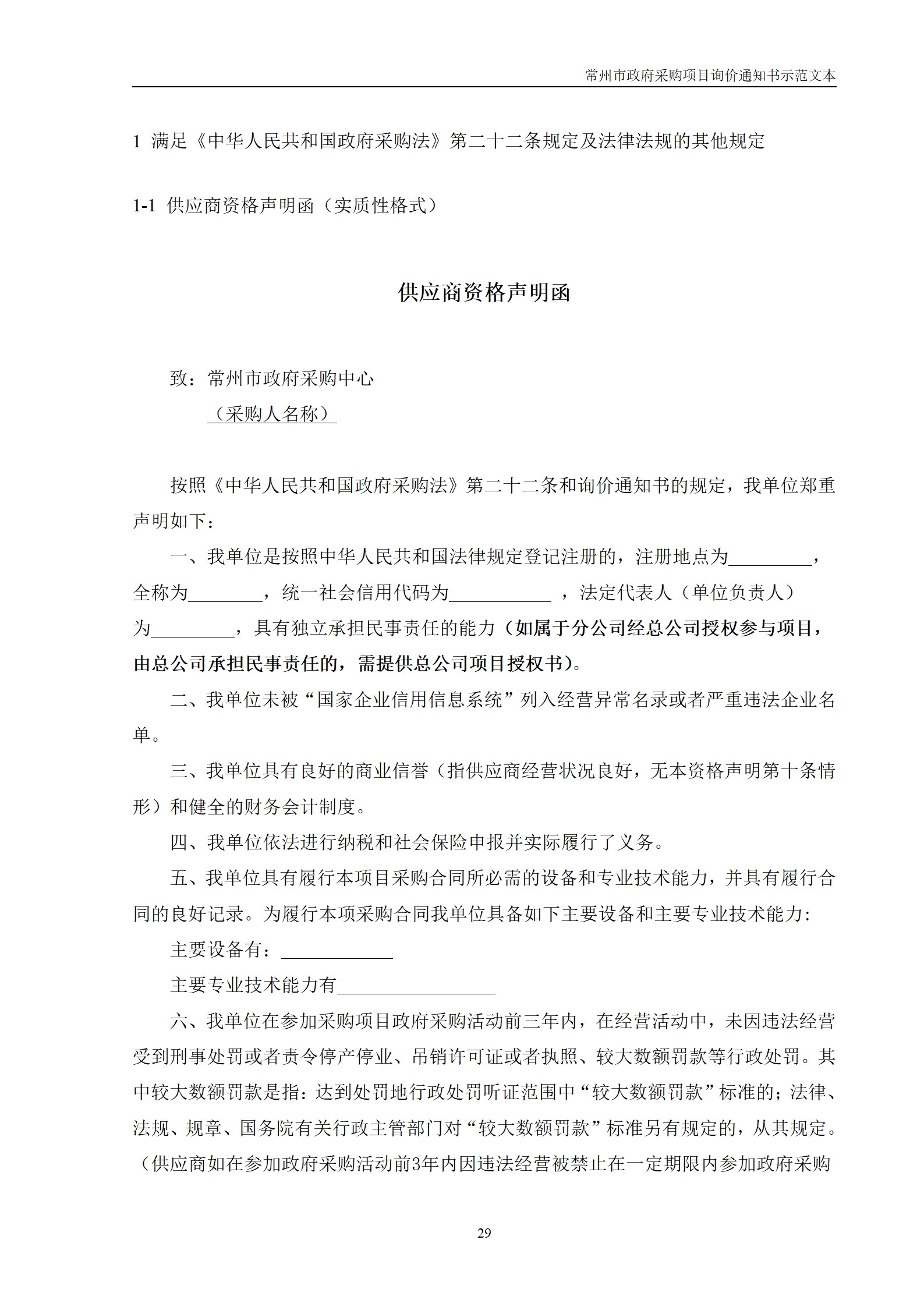 常州市政府采购文件示范文本(2022年版试行)——询价采购示范文本